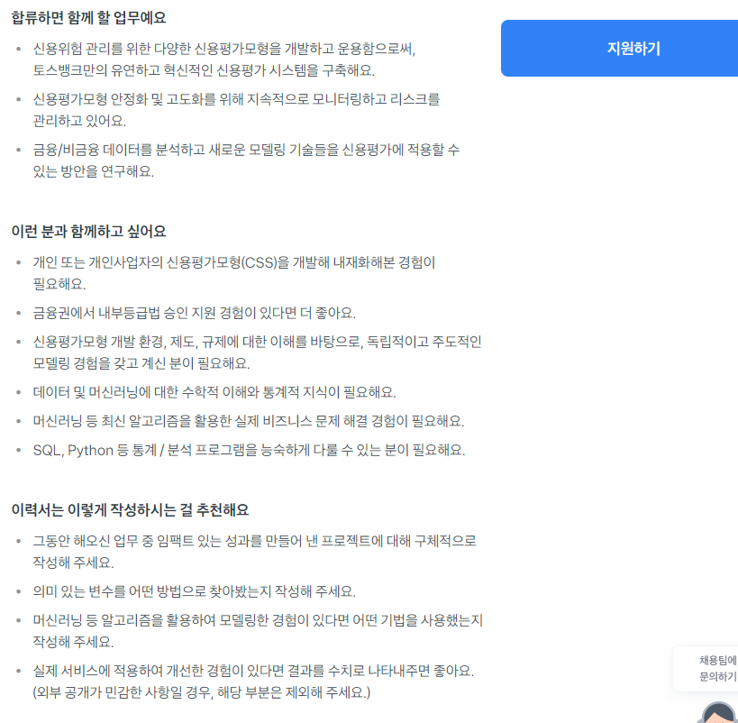 | (우대) 내부등급 승인 지원 경험 | 없음 |