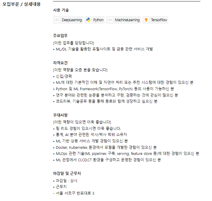 직무 : 머신러닝 엔지니어