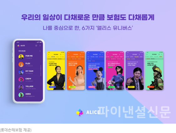 롯데 손해보험은 '세성에 없던 보험서비스 상품 제공'을 지향하는 신규 플랫폼 '앨리스'를 정식으로 출시