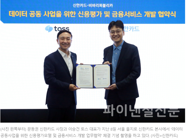 <신한카드, 토스와 신용평가모델-금융서비스 개발 업무협약>