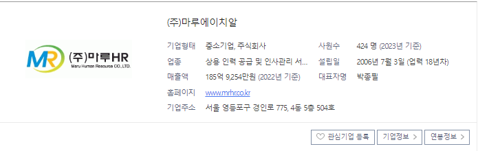 회사 : (주)마루에이치알 - 현대카드 파견직