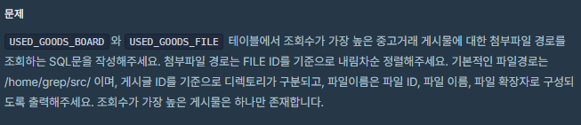 [MySQL] 조회수가 가장 많은 중고거래 게시판의 첨부파일 조회하기(프로그래머스) 본문