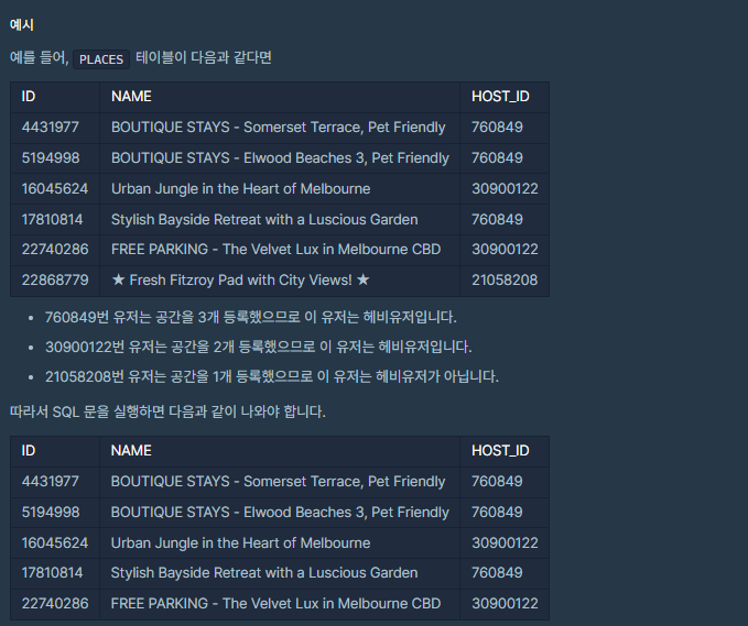[MySQL] 헤비 유저가 소유한 장소(프로그래머스) 본문