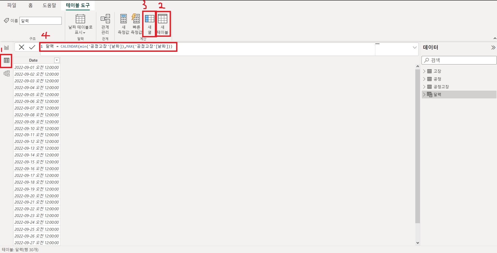 시간에 따른 변화를 보기위해 달력이라는 테이블을 생성해준다.