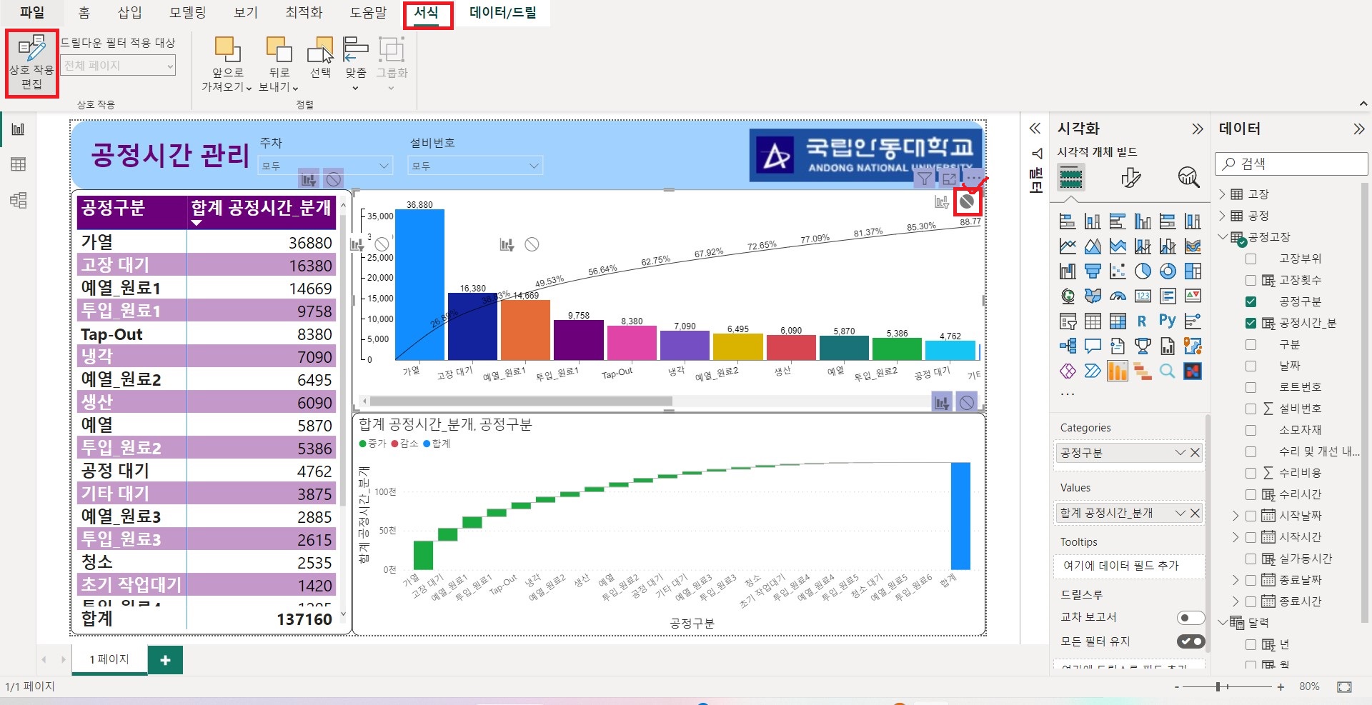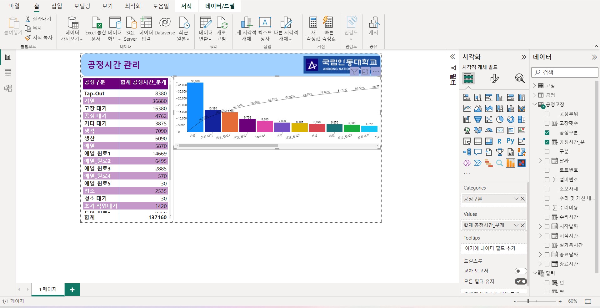 <Power BI를 이용하여 생산데이터를 활용하여 공정시간 시각화>