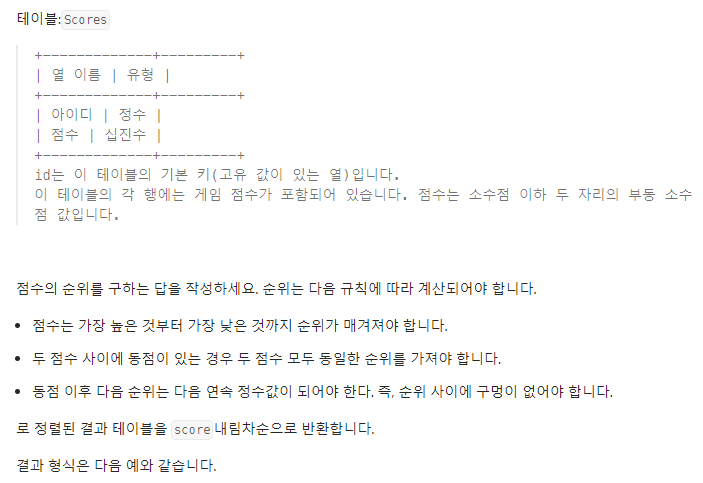 [SQL/Leetcode] 178. Rank Scores 본문