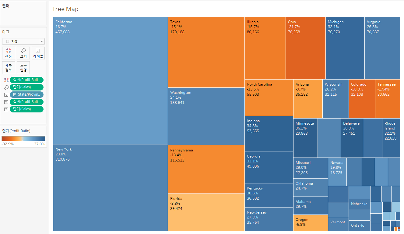 [Tableau] 구성 비율을 보기 위한 데이터 시각화(Donut Chart,Tree Map, Stacked Bar Chart) 본문