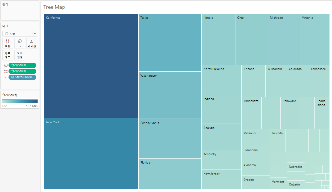 [Tableau] 구성 비율을 보기 위한 데이터 시각화(Donut Chart,Tree Map, Stacked Bar Chart) 본문