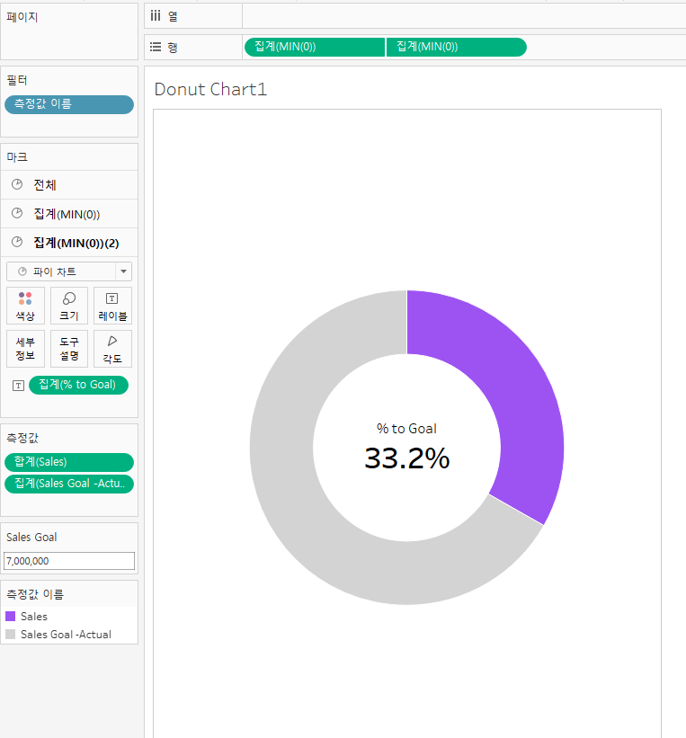 - 계산된 필드 만들기 = [Sales Goal] - SUM([Sales])