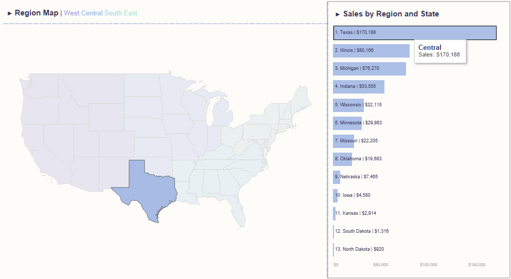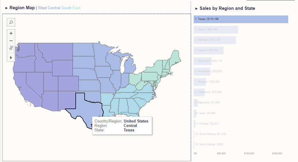 맵 위에 마우스 오버를 하면 State 막대그래프 하이라이트를 나타내보자