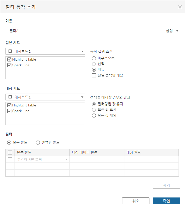 [Tableau] 대시보드 동작 설정하기(Filter,Highlight,URL Action)