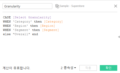 - 매개변수는 반드시 계산된 필드에 넣어야 사용할 수 있다.