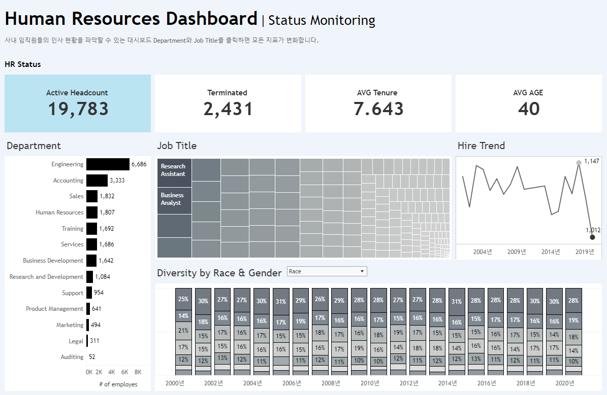 오늘은 Tableau를 이용하여 HR Dashboard를 만들었다.