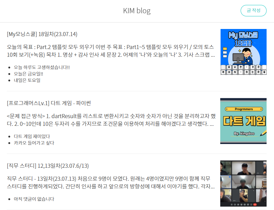 그래서 나는 티스토리의 나의 블로그와 동일하게 만들어 보고자 간단하게 미니 프로젝트를 진행해보았다.